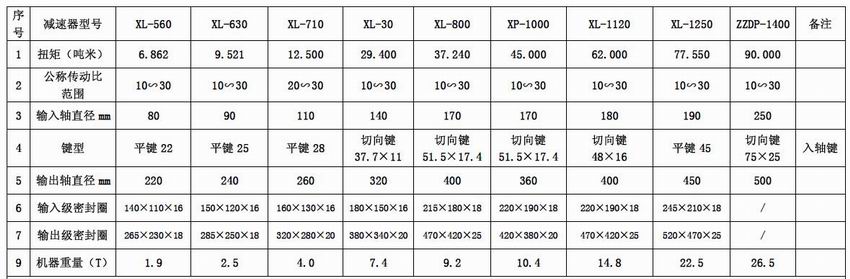 行星齒輪減速器技術參數(shù)表